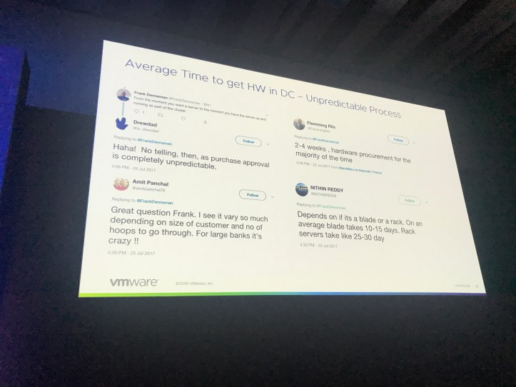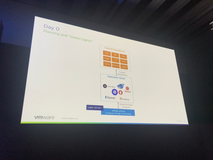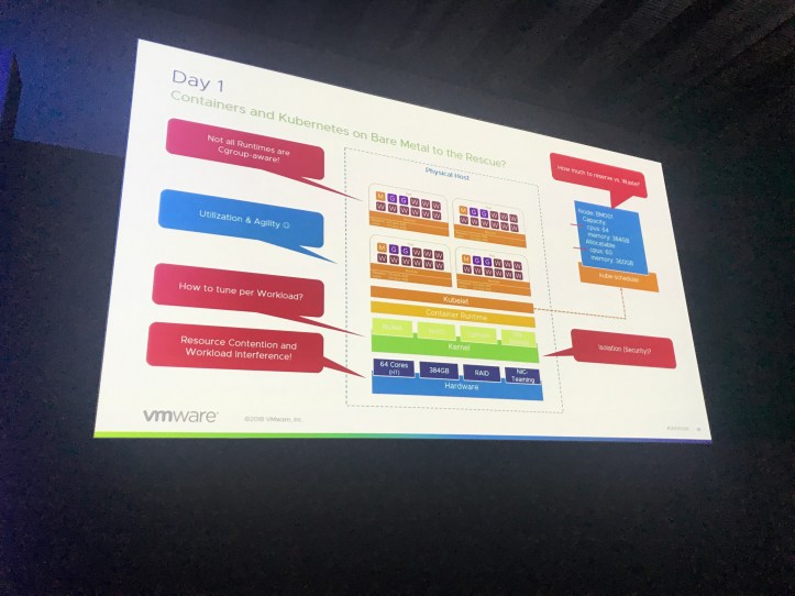 So the first session at VMworld I managed to capture for this blog is something I was looking forward too and had been recommended by a number of people; Frank Denneman and Michale Gasch covering Kubernetes on vSphere. Their session was to answer why vSphere for Kubernetes and not on bare metal.