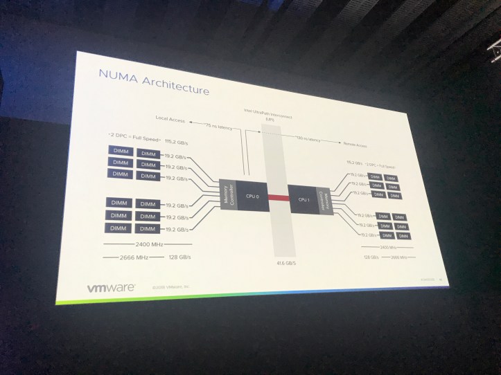 Frank stepped back into talk about his deep knowledge of the hypervisor. He talked about how vSphere is aware of hyper threading and NUMA, so can make intelligent decisions to best optimise performance for container hosts.