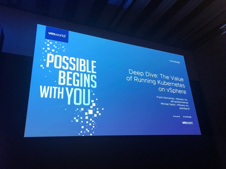 […] – Deep Dive: The Value of Running Kubernetes on vSphere This very interesting session has an article written about it by one of the attendees. Interesting stuff actually and worth checking out the […]